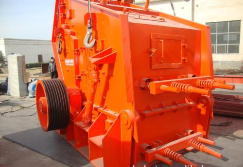 在處理物料含水量過大時(shí),反擊式破碎機(jī)的進(jìn)料溜槽和反擊板可配備加熱裝置,防止物料的粘結(jié)。反擊式破碎機(jī)不須配備底部篩板可有效防止堵塞現(xiàn)象。